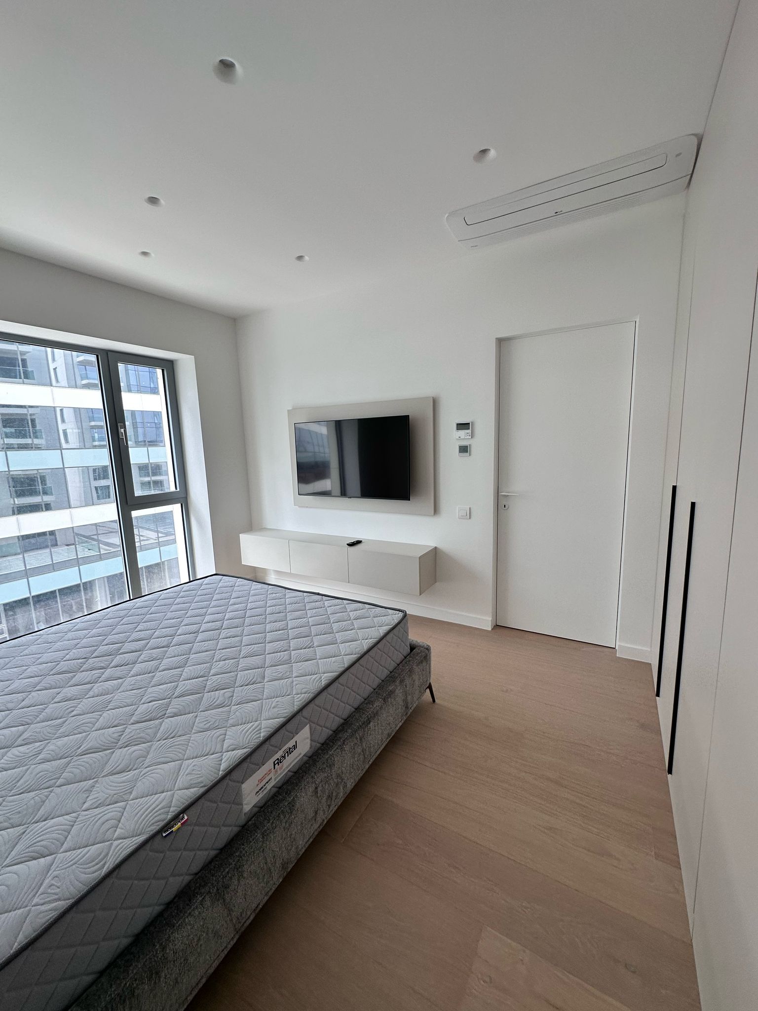 The apartment also features smart TVs in both the living room and bedroom for a complete entertainment experience.