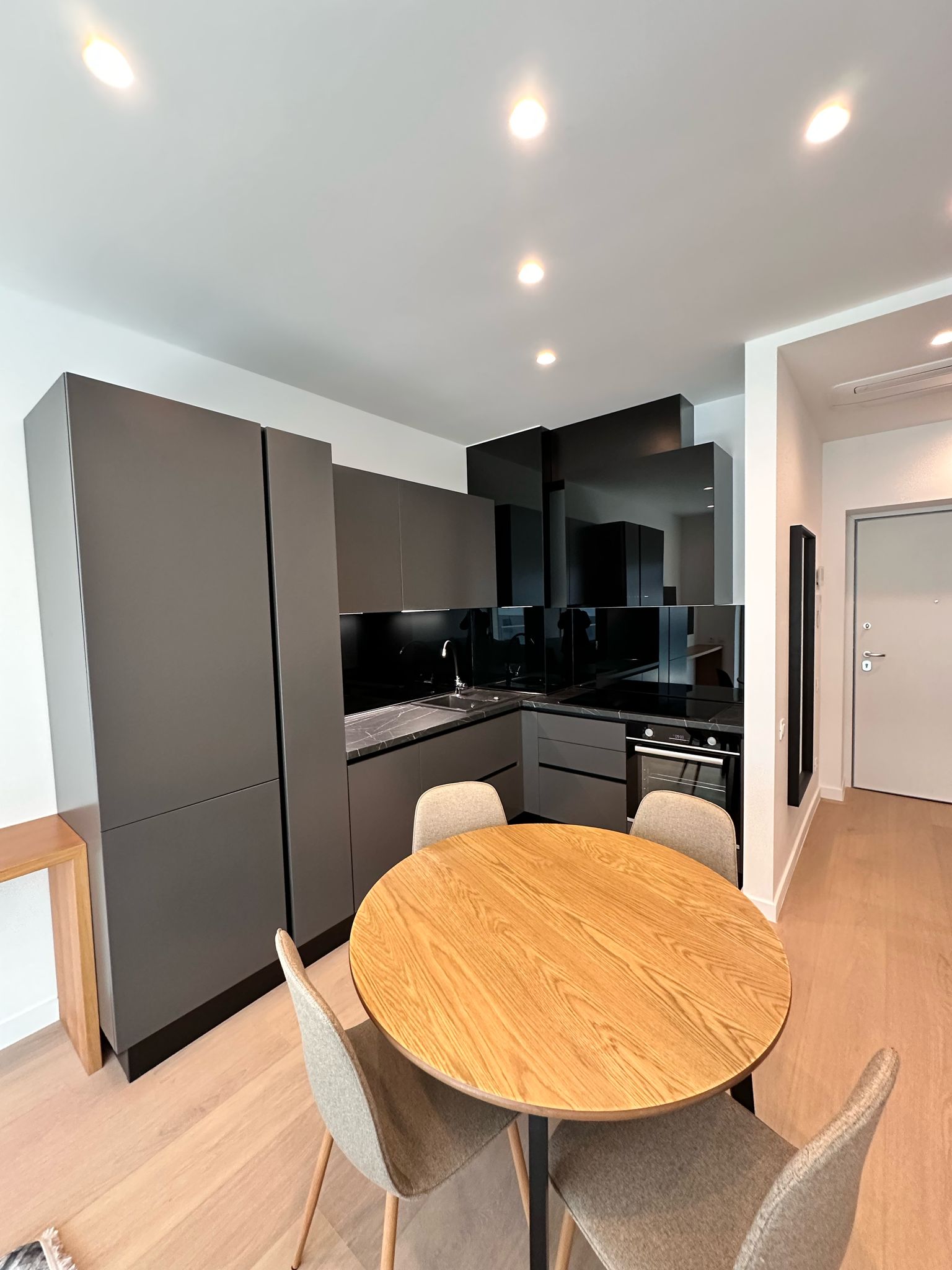 Discover the comfort of a modern, elegantly designed apartment with a perfectly organized layout, featuring ample storage space and custom-made furniture.